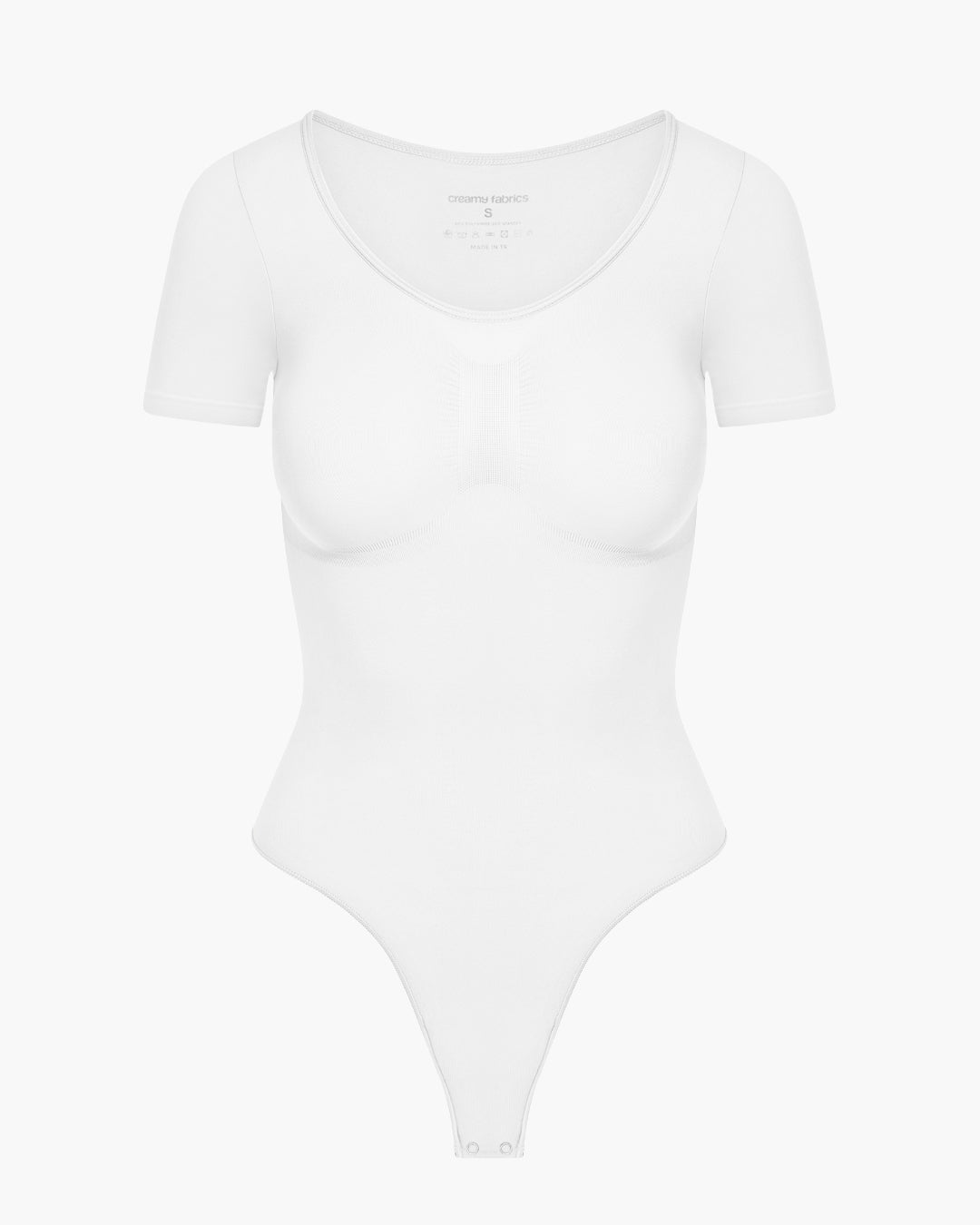 متوسط الطول، خط رقبة مستدير على شكل دمعة، أكمام قصيرة لدعم إضافي، ضغط قوي على منطقة البطن والخصر، خيط خلفي غير مرئي من الخلف، مجمعة مصنوعة من القطن بنسبة 100% لراحة مريحة عند الارتداء