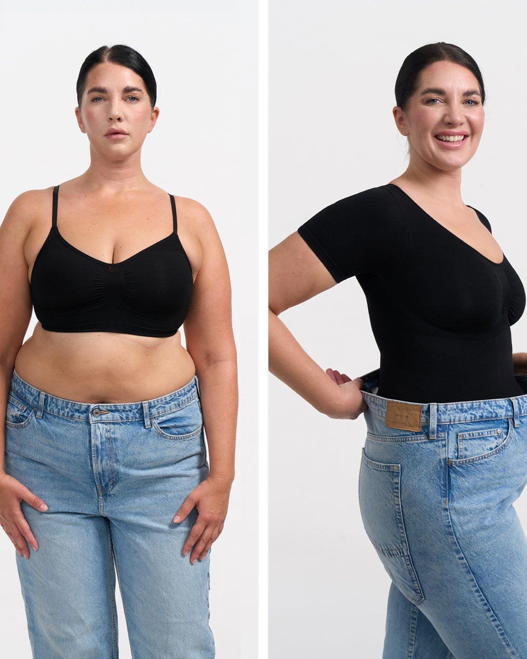 تُظهر صورنا قبل وبعد الصورة بشكل مثير للإعجاب كيف أن ملابسنا ذات الأسعار المعقولة تتيح تصحيحاً مذهلاً للقوام. من الأساس المريح وغير الواضح إلى الشكل الجذاب والناعم والمحدد، تستحضر ملابسنا المشكّلة مظهرًا جديدًا تمامًا بسعر مناسب. جرّبي الثقة بالنفس والأناقة التي يمكن أن تمنحك إياها ملابسنا المشكّلة. ابدئي تحولك الشخصي اليوم!