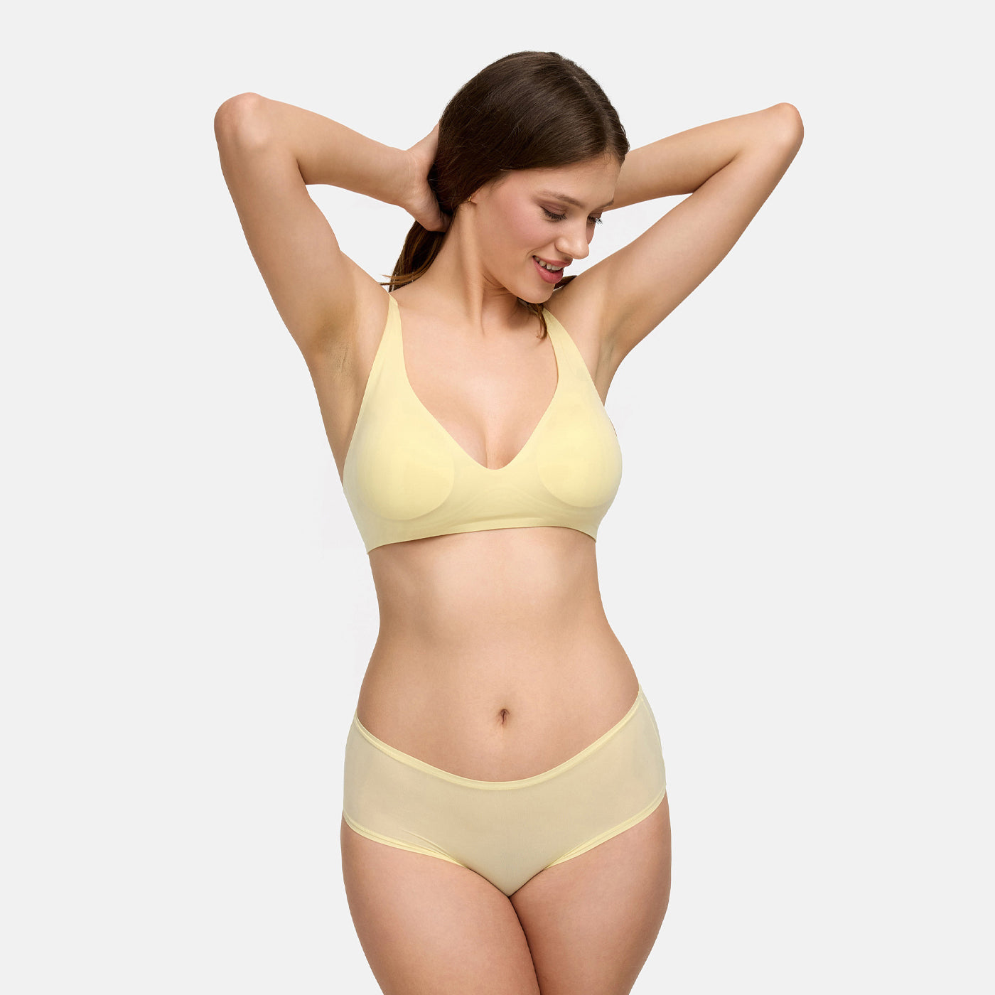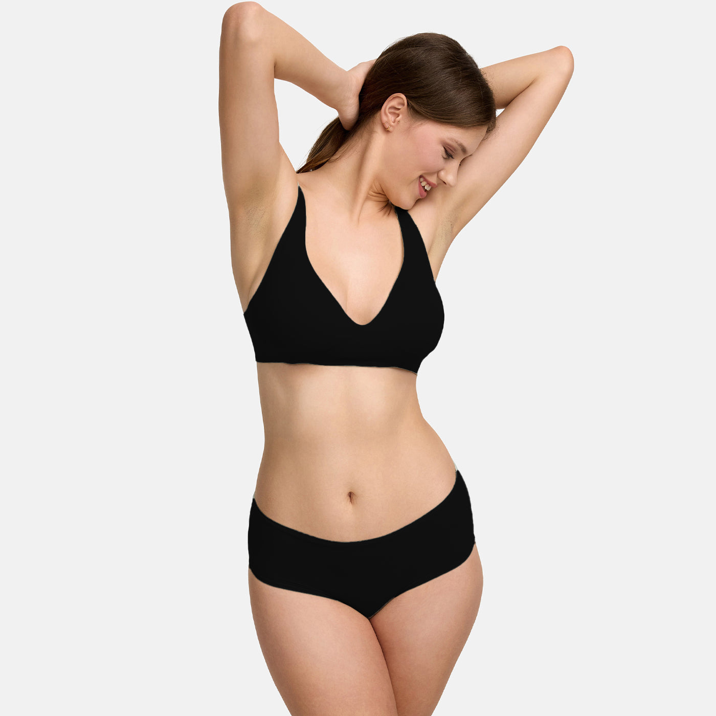 السروال القصير المثالي لكل يوم. هذا السروال القصير ناعم الملمس بشكل لا يصدق ويتمدد بشكل مثالي ليمنحك مقاسًا مريحًا وملائمًا. يبدو النسيج الناعم وكأنه جلد ثانٍ ويضمن لكِ ملاءمة مثالية. بفضل الدرزات الدقيقة والقصّة التي تستقر تحت الخصر الطبيعي، تظل مريحة وغير مرئية تحت الملابس. مثالي للارتداء طوال اليوم - للحصول على أقصى قدر من الراحة والقصّة الناعمة.