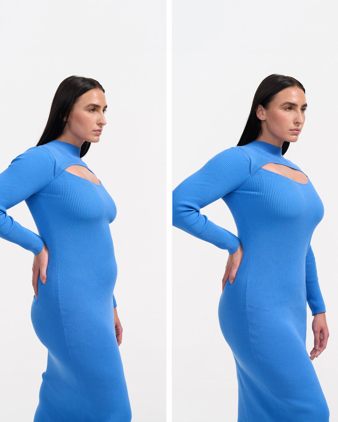 Notre photo avant et après montre de manière impressionnante comment nos shapewears abordables permettent de corriger la silhouette de manière étonnante. D'une base confortable mais néanmoins discrète à une silhouette séduisante, lisse et profilée, nos shapewears créent comme par magie une toute nouvelle apparence à un prix abordable. Découvre dès maintenant la confiance en soi et l'élégance que nos shapewears peuvent te procurer. Commence ta transformation personnelle dès aujourd'hui !