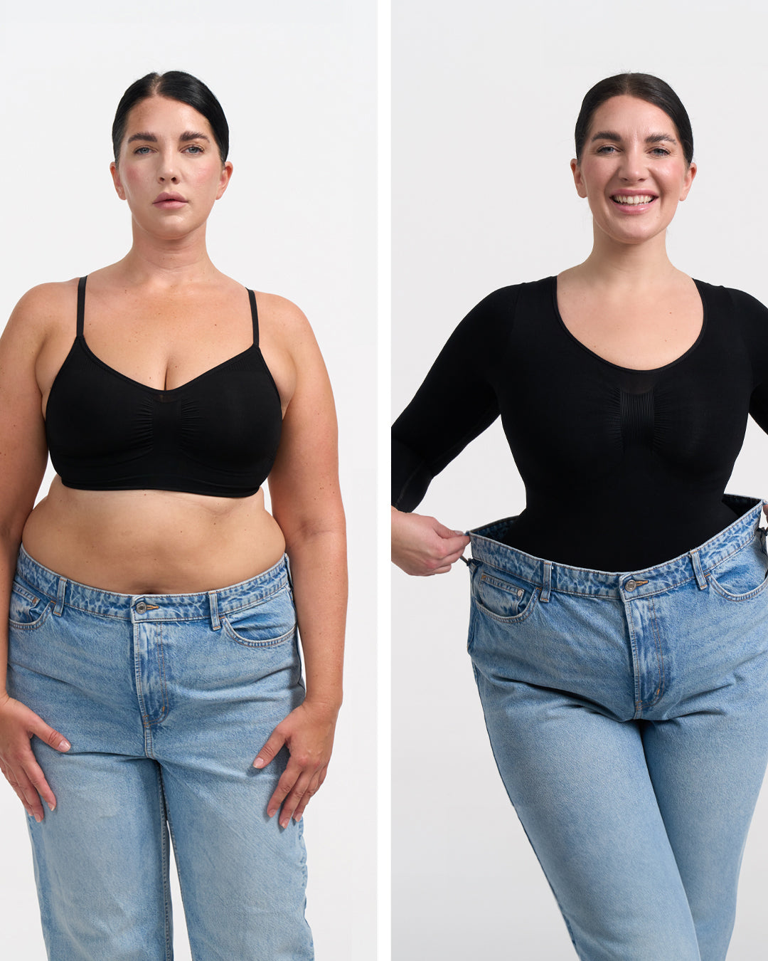 Notre photo avant et après montre de manière impressionnante comment nos shapewears abordables permettent de corriger la silhouette de manière étonnante. D'une base confortable mais néanmoins discrète à une silhouette séduisante, lisse et profilée, nos shapewears créent comme par magie une toute nouvelle apparence à un prix abordable. Découvre dès maintenant la confiance en soi et l'élégance que nos shapewears peuvent te procurer. Commence ta transformation personnelle dès aujourd'hui !