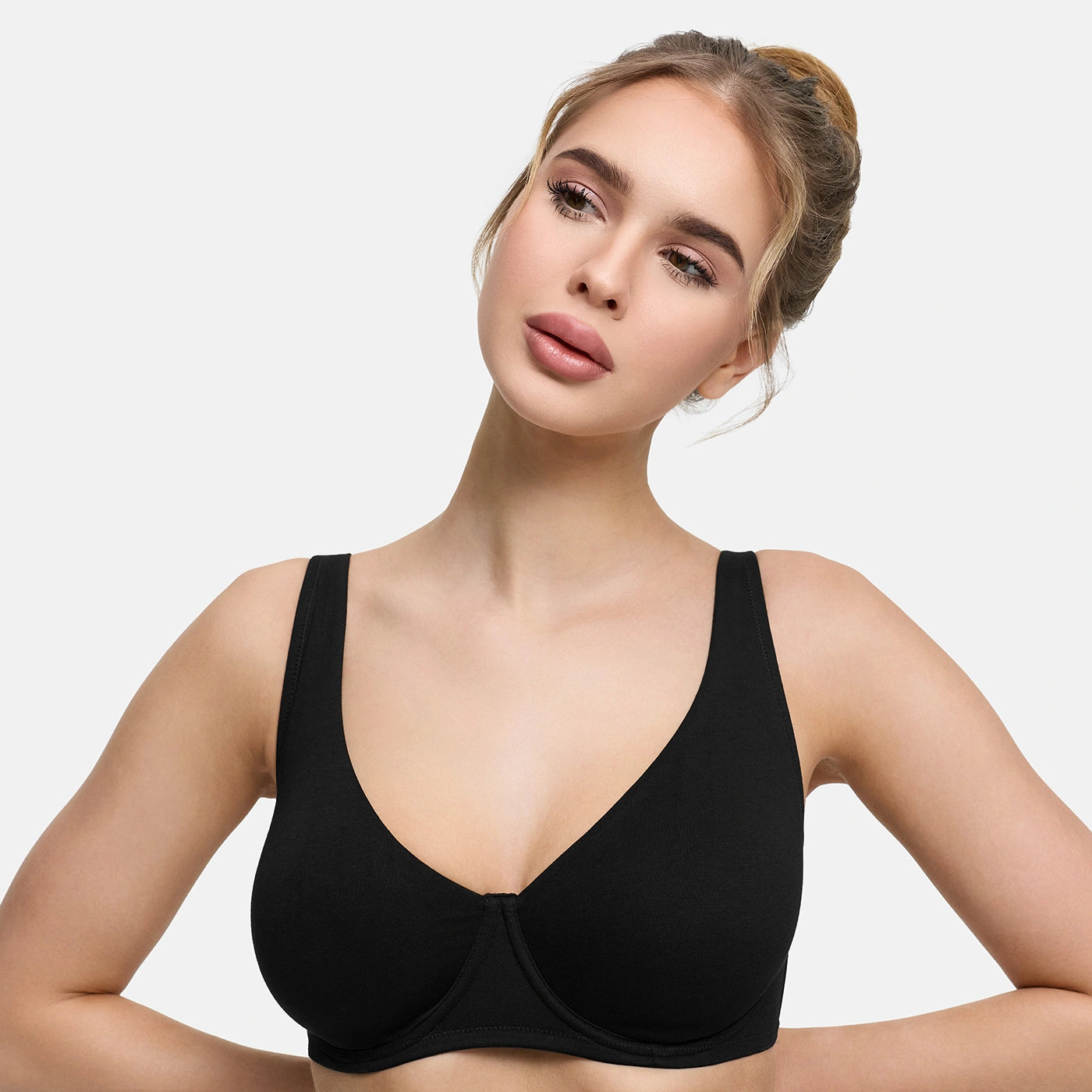 Ein BH, der sich wie selbstverständlich anfühlt. Die weiche Baumwolle liegt angenehm auf der Haut, während die sanft stützenden Bügel dir sicheren Halt geben, ganz ohne Pads. Der Look bleibt natürlich und clean, das Tragegefühl leicht und entspannt. Perfekt für tägliches Tragen, für schmale Tops und figurbetonte Outfits, wenn du Komfort willst, der den ganzen Tag bleibt.