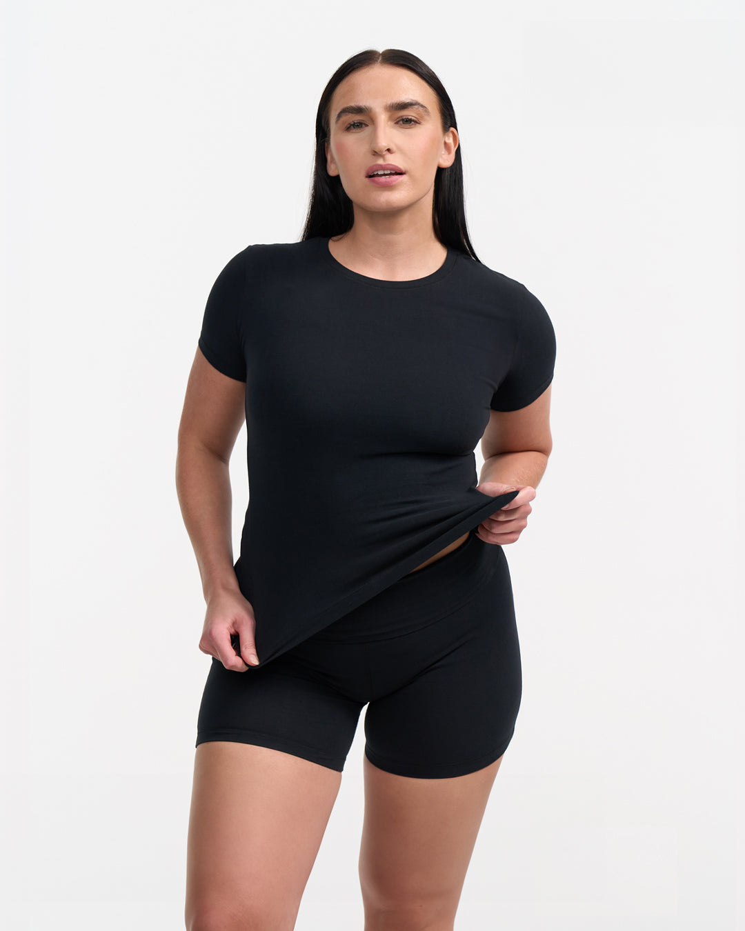 Ons katoenen T-shirt is de perfecte dagelijkse metgezel - lichtgewicht, zacht en veelzijdig. Het is gemaakt van stretchkatoen van hoge kwaliteit, vormt zich zachtjes naar je huid en biedt een comfortabel, lichtgewicht gevoel dat je de hele dag vergezelt. Het ondoorzichtige ontwerp zorgt ervoor dat je je in elke situatie volledig comfortabel voelt, zonder enige vorm.