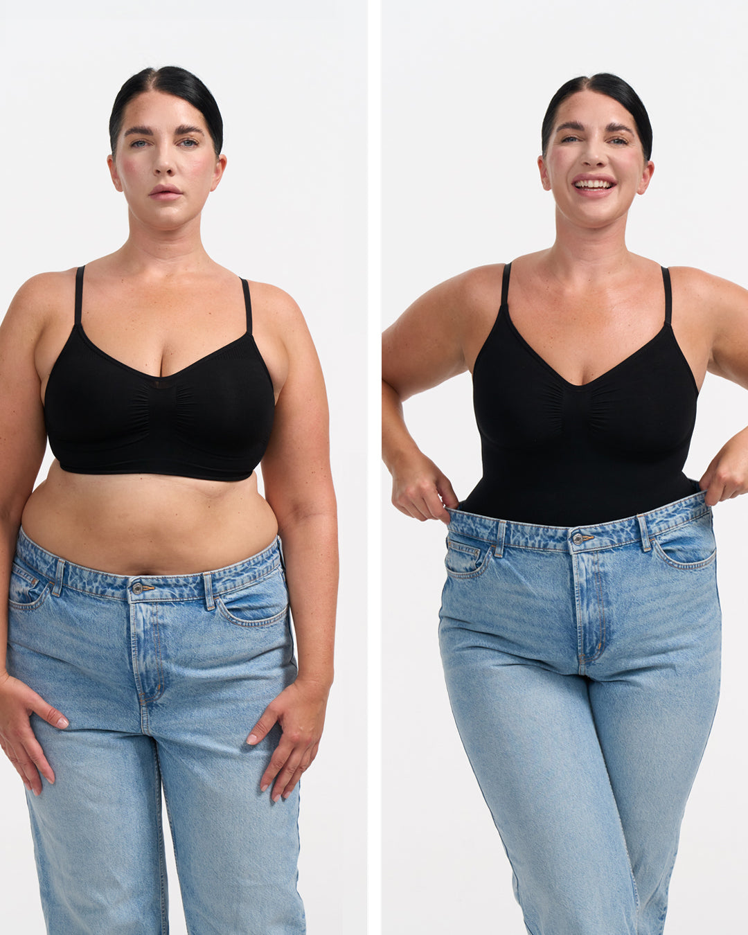Unser Vorher und Nachher Bild zeigt eindrucksvoll, wie unsere bezahlbare Shapewear eine erstaunliche Figurkorrektur ermöglicht. Von einer bequemen, aber dennoch unscheinbaren Grundlage bis hin zu einer verführerischen, glatten und konturierten Silhouette - unsere Shapewears zaubern ein völlig neues Erscheinungsbild zu einem erschwinglichen Preis. Erlebe jetzt selbst das Selbstbewusstsein und die Eleganz, die unsere Shapewear dir verleihen kann. Starte deine persönliche Transformation noch heute!