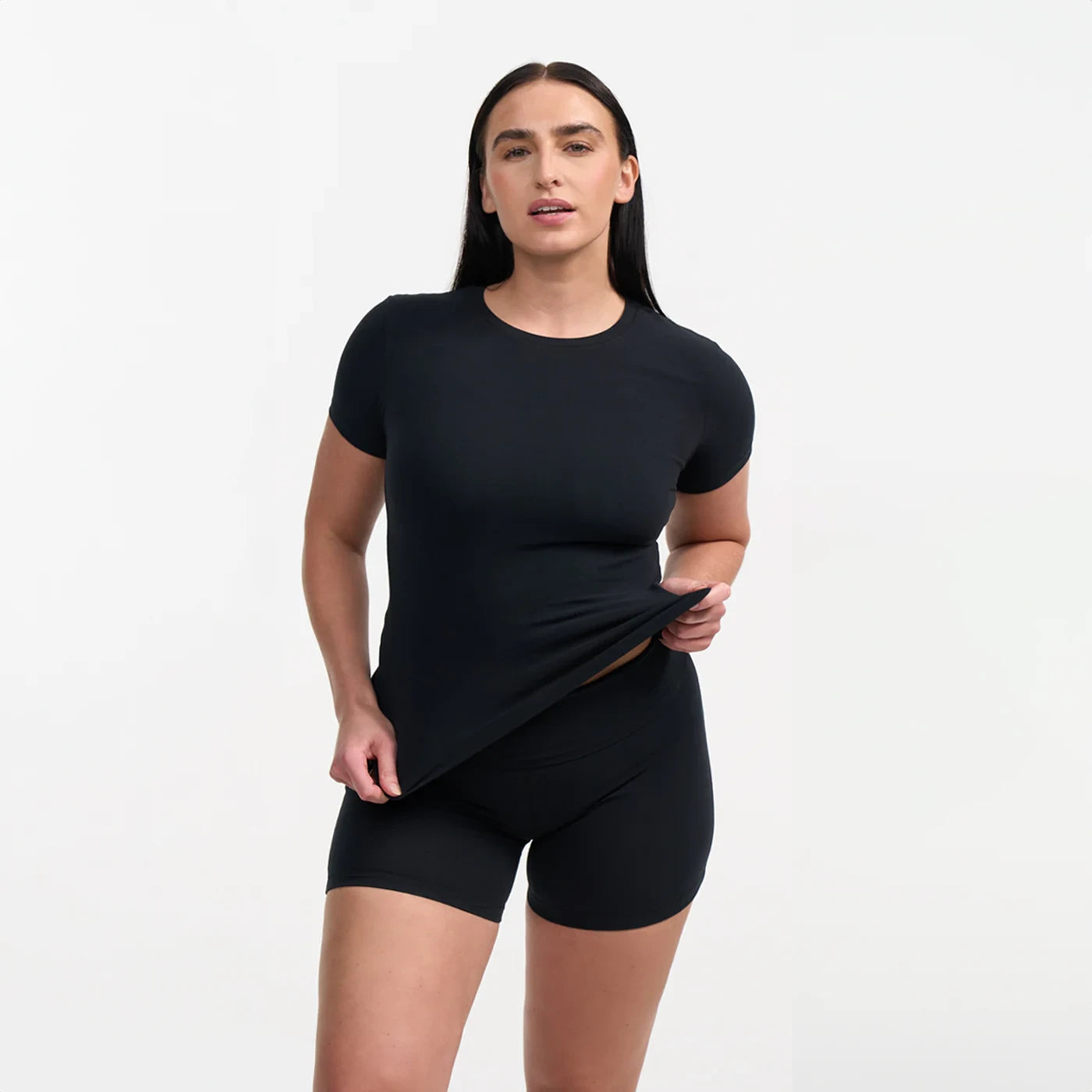 Unser Cotton T-Shirt ist der perfekte Begleiter für deinen Alltag – leicht, weich und absolut vielseitig. Gefertigt aus hochwertigem Baumwoll-Stretch-Material, schmiegt es sich sanft an deine Haut an und bietet ein angenehmes, leichtes Tragegefühl, das dich den ganzen Tag begleitet. Das blickdichte Design sorgt dafür, dass du dich in jeder Situation rundum wohlfühlst, ganz ohne Formgebung.