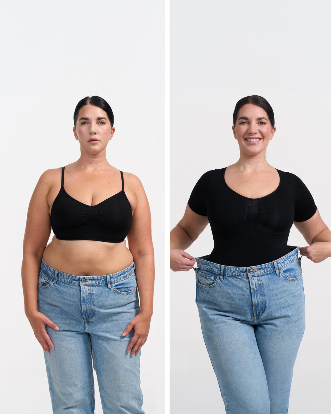 Öncesi ve sonrası resmimiz, uygun fiyatlı şekillendirici giysilerimizin nasıl inanılmaz bir şekil düzeltmesi sağladığını etkileyici bir şekilde göstermektedir. Rahat ancak göze çarpmayan bir temelden baştan çıkarıcı, pürüzsüz ve konturlu bir siluete kadar, şekillendirici giysilerimiz uygun bir fiyata tamamen yeni bir görünüm yaratır. Şekillendirici giysilerimizin size verebileceği özgüven ve zarafeti deneyimleyin. Kişisel dönüşümünüze bugün başlayın!