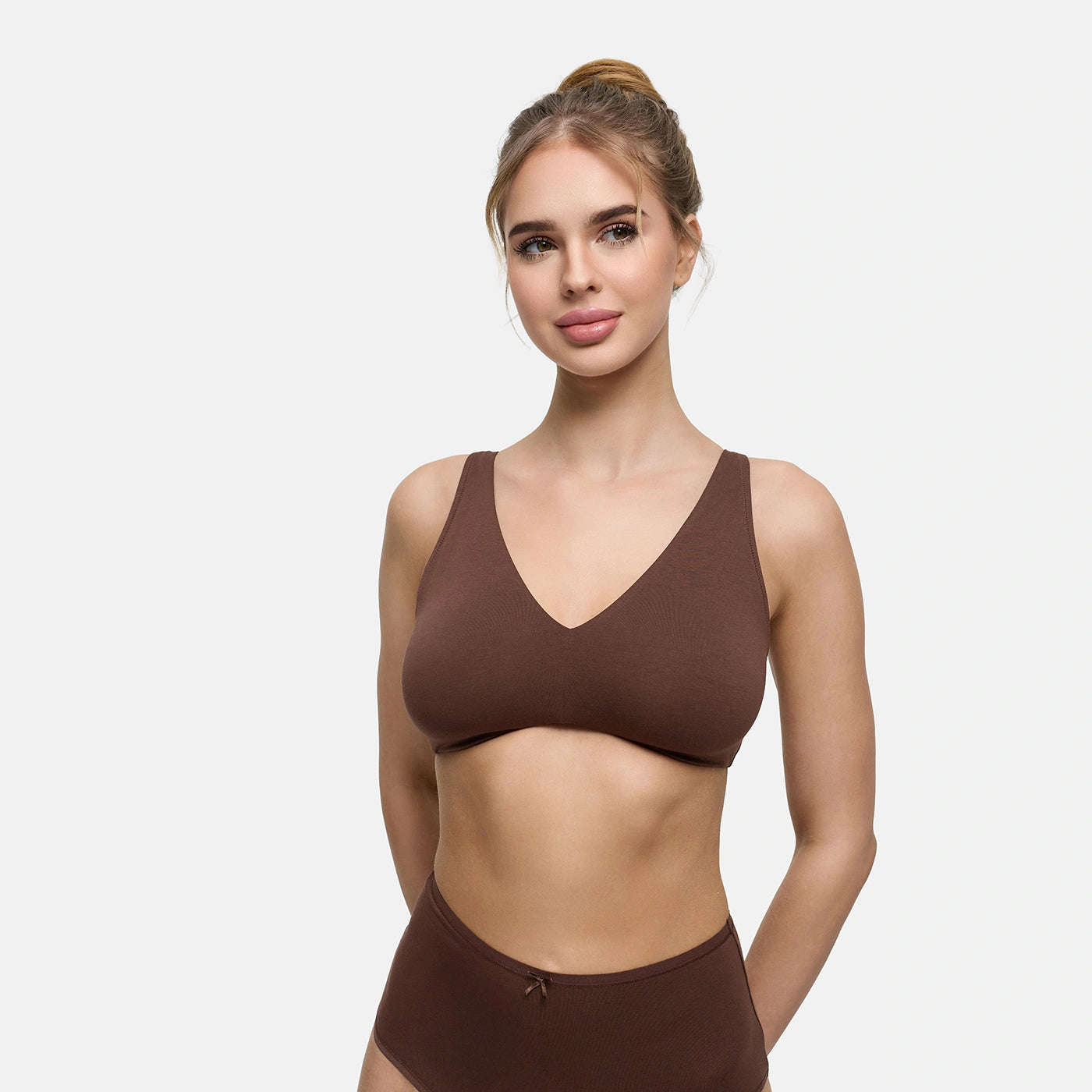 Ein BH, der sich deinem Körper anpasst, nicht umgekehrt. Die superweiche Baumwolle sorgt für ein sanftes Tragegefühl und lässt die Haut atmen. Ganz ohne Bügel oder harte Elemente bietet er leichten, zuverlässigen Halt und begleitet dich entspannt durch Alltag und Freizeit. Perfekt für sensible Haut und alle, die Komfort neu definieren möchten.